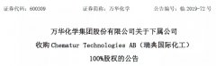 穩(wěn)坐全球MDI龍頭!萬華化學(xué)收購瑞典國際化工100%股權(quán)