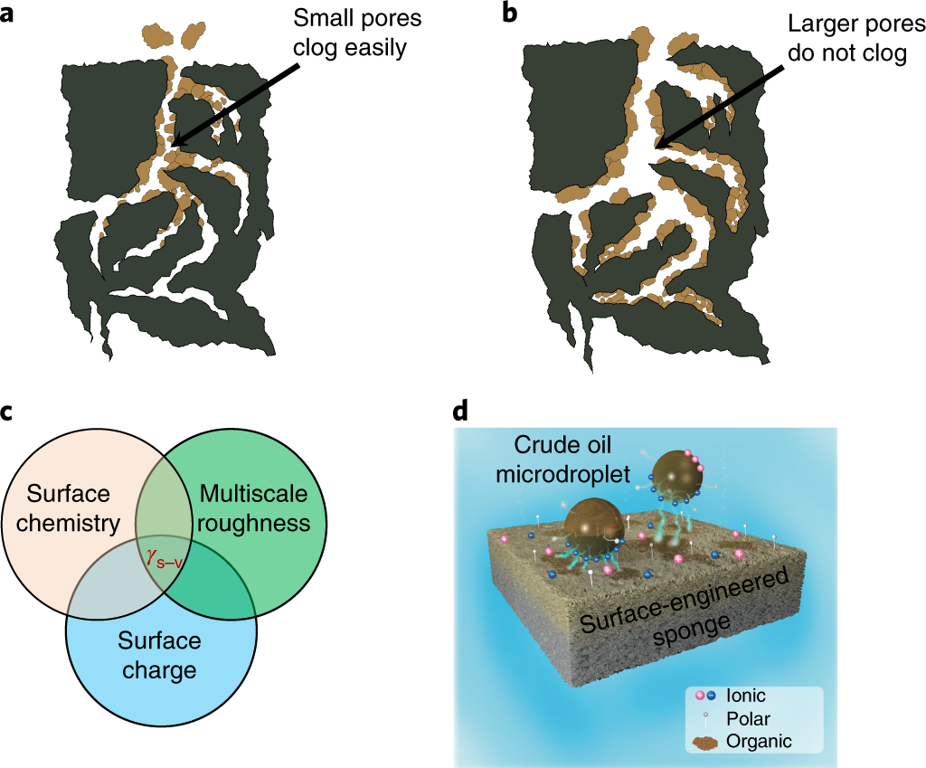 倫敦帝國理工大學(xué)和多倫多大學(xué)的研究人員已經(jīng)開發(fā)出了一種經(jīng)濟高效的海綿,可以較快地吸收油(不到10分鐘)。該研究文章發(fā)表在《自然》雜志上,描述了一種創(chuàng)新的表面工程海綿(SEnS)。該海綿有機結(jié)合了表面化學(xué)、電荷和粗糙度,擅長吸附原油微滴。