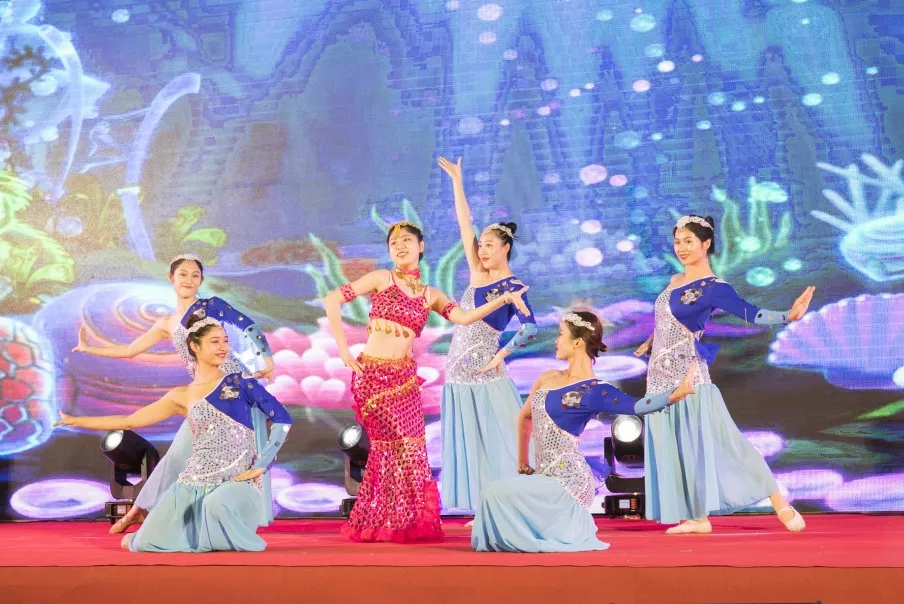 舞者歡快輕盈地舞動著,宛若一群活潑跳躍的魚兒,