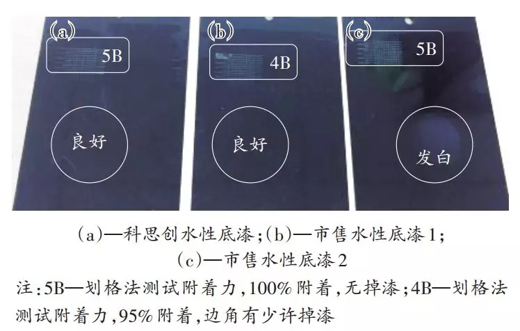 圖8不同保險(xiǎn)杠底漆附著力和耐水對(duì)比