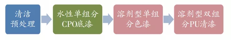 ????????隨著CPO和PO技術(shù)的發(fā)展,逐漸出現(xiàn)水性CPO和水性PO的底漆,可降低VOC的排放,其工藝流程如圖4所示。