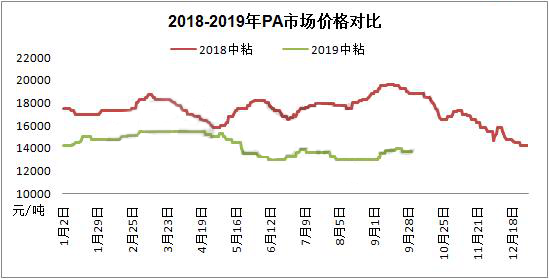 ????????PA66市場(chǎng)繼續(xù)下行,跌幅700元/噸。下游開(kāi)工負(fù)荷仍較低,對(duì)PA66采購(gòu)量有限,且對(duì)高價(jià)貨抵觸明顯。商家拋貨意向明顯,實(shí)盤商談空間加大。場(chǎng)內(nèi)交投氛圍仍較清淡。 截止月底PA6中粘切片13600-14000元/噸,PA66主流價(jià)格22600-22800元/噸。