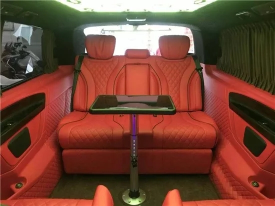 ????????又比如,以下這款2019款奔馳V250也在內(nèi)飾上彰顯創(chuàng)新個(gè)性潮流。正副駕座的后背上,不只是配備了折疊小桌板,更是添加了兩個(gè)獨(dú)立Ipad;后電動(dòng)窗簾系統(tǒng),搭配淺色的窗簾和其他內(nèi)飾裝飾,燈光照明,氛圍燈飾環(huán)繞,營(yíng)造自然舒適的駕乘環(huán)境。