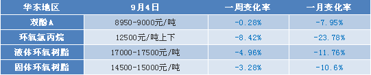 ????????據(jù)中宇數(shù)據(jù)監(jiān)測(cè),8月份以來(lái)環(huán)氧樹(shù)脂產(chǎn)業(yè)鏈上整體呈現(xiàn)出下跌態(tài)勢(shì),其中環(huán)氧氯丙烷市場(chǎng)月內(nèi)更是暴跌暴漲,8月整體呈現(xiàn)出下跌走勢(shì),其對(duì)環(huán)氧樹(shù)脂成本面有明顯拖累,而環(huán)氧樹(shù)脂市場(chǎng)亦跟隨其整體下行。雙酚A市場(chǎng)亦受到環(huán)氧氯丙烷的壓制走弱。