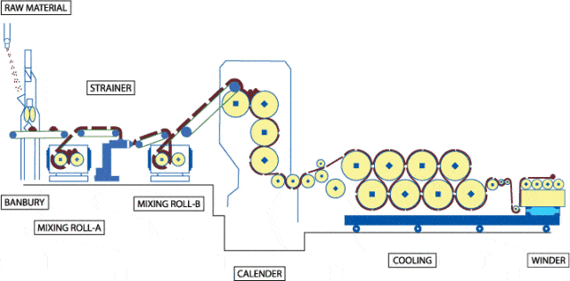 是指將熱塑性樹(shù)脂加熱到粘流溫度成為熔融體,通過(guò)兩個(gè)以上的平行異向旋轉(zhuǎn)輥筒間隙,使熔體受到輥筒擠壓延展、拉伸作用而成為具有一定規(guī)格尺寸和符合質(zhì)量要求的連續(xù)片狀制品,自然冷卻后成型。