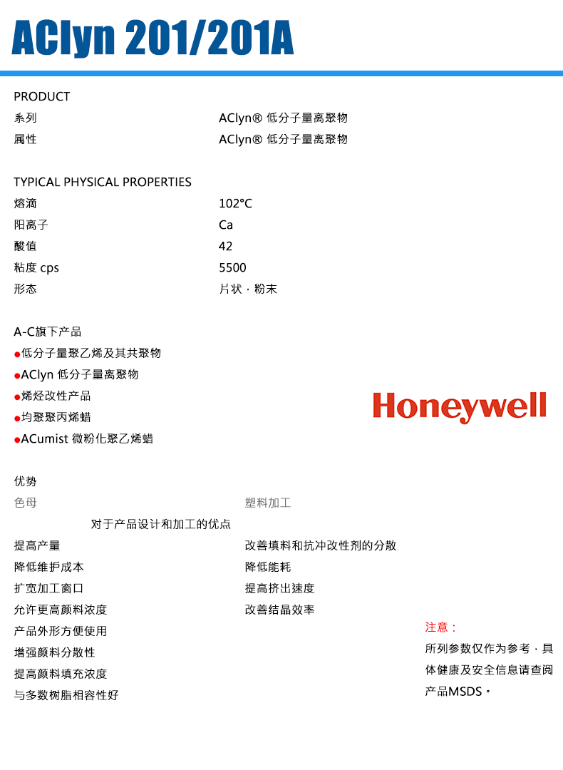 - 霍尼韋爾 AClyn® 201A EAA共聚物的鈣離子聚合物 物性表, 霍尼韋爾 AClyn® 201A EAA共聚物的鈣離子聚合物 產(chǎn)品參數(shù),霍尼韋爾 AClyn® 201A EAA共聚物的鈣離子聚合物 性能表,霍尼韋爾 AClyn® 201A EAA共聚物的鈣離子聚合物 出廠報告, MSDS,, 物質(zhì)安全資料表, UL黃卡,{ SGS報告, RoHS, 食品級認證, NSF飲用水標準, 產(chǎn)品資料, 產(chǎn)品性能, 出廠報告, 原廠原包, 代理商, 熱變形溫度, 熔指數(shù), 流動系數(shù), 抗沖擊性能、沖擊強度, 低溫韌性、低溫抗沖擊性能, 熔體流動系數(shù)、熔體流動速率, 加工工藝、加工參數(shù)、加工溫度, 歐盟RoHS 德國FDA 美國FDA 日本FDA
