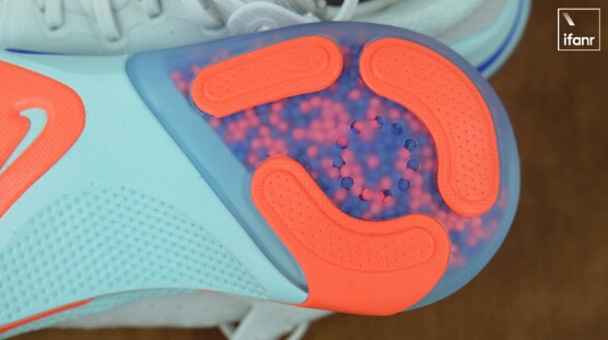 ????????在第一次穿著的時候,可以很明顯地感覺到,腳后跟和前腳掌兩處的緩震小球堆積在一起,高出鞋底平面頂住了腳底,這個時候就需要唱跳 rap 和籃球活動一下,把聚集的小球門踩均勻,以獲得和腳型適配的獨一無二的緩震小球分布。