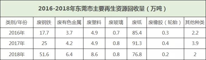 ????????近三年?yáng)|莞市主要再生資源回收量穩(wěn)步上升,平均增長(zhǎng)率為10%,這與近年來(lái)全國(guó)再生資源回收行業(yè)發(fā)展態(tài)勢(shì)相符合,回收行業(yè)逐步走出效益低迷態(tài)勢(shì)。