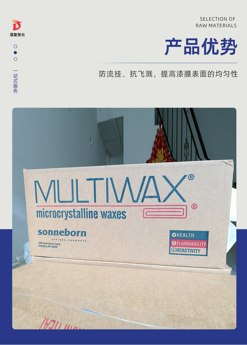 產品用途:產品適用于軍品、電子、冶金、化工、日化、醫(yī)藥及食品等行業(yè),用于防潮、粘結、上光、絕緣、鈍感、鑄模、橡膠、醫(yī)藥、化妝品、食品組份及食品包裝等。