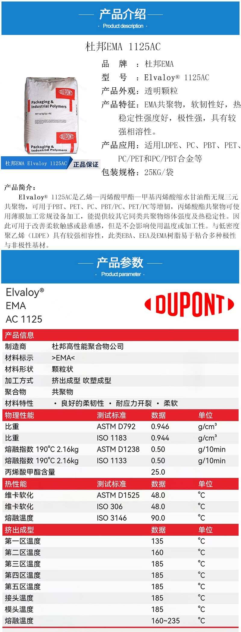- EMA 杜邦 1125 相溶劑 PC/PET PBT增韌劑 LDPE薄膜 Elvaloy 物性表, EMA 杜邦 1125 相溶劑 PC/PET PBT增韌劑 LDPE薄膜 Elvaloy 產(chǎn)品參數(shù),EMA 杜邦 1125 相溶劑 PC/PET PBT增韌劑 LDPE薄膜 Elvaloy 性能表,EMA 杜邦 1125 相溶劑 PC/PET PBT增韌劑 LDPE薄膜 Elvaloy 出廠報(bào)告, MSDS,, 物質(zhì)安全資料表, UL黃卡,{ SGS報(bào)告, RoHS, 食品級(jí)認(rèn)證, NSF飲用水標(biāo)準(zhǔn), 產(chǎn)品資料, 產(chǎn)品性能, 出廠報(bào)告, 原廠原包, 代理商, 熱變形溫度, 熔指數(shù), 流動(dòng)系數(shù), 抗沖擊性能、沖擊強(qiáng)度, 低溫韌性、低溫抗沖擊性能, 熔體流動(dòng)系數(shù)、熔體流動(dòng)速率, 加工工藝、加工參數(shù)、加工溫度, 歐盟RoHS 德國(guó)FDA 美國(guó)FDA 日本FDA
