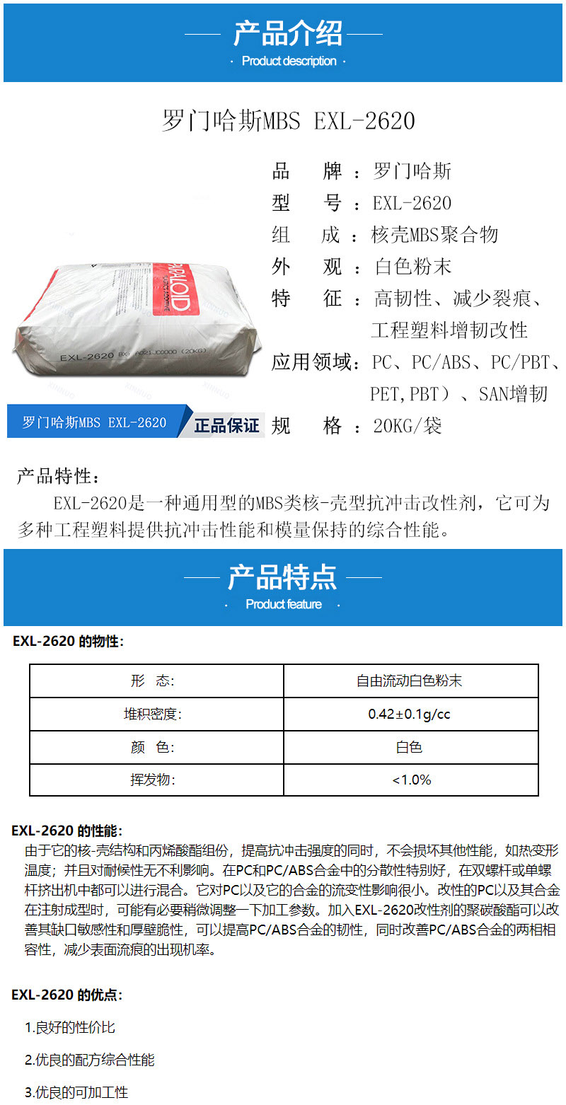 - MBS美國羅門哈斯2620 塑料增韌劑 ABS增韌 PS抗沖擊改性 mbs2620 物性表, MBS美國羅門哈斯2620 塑料增韌劑 ABS增韌 PS抗沖擊改性 mbs2620 產(chǎn)品參數(shù),MBS美國羅門哈斯2620 塑料增韌劑 ABS增韌 PS抗沖擊改性 mbs2620 性能表,MBS美國羅門哈斯2620 塑料增韌劑 ABS增韌 PS抗沖擊改性 mbs2620 出廠報告, MSDS,, 物質安全資料表, UL黃卡,{ SGS報告, RoHS, 食品級認證, NSF飲用水標準, 產(chǎn)品資料, 產(chǎn)品性能, 出廠報告, 原廠原包, 代理商, 熱變形溫度, 熔指數(shù), 流動系數(shù), 抗沖擊性能、沖擊強度, 低溫韌性、低溫抗沖擊性能, 熔體流動系數(shù)、熔體流動速率, 加工工藝、加工參數(shù)、加工溫度, 歐盟RoHS 德國FDA 美國FDA 日本FDA