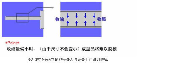 3、在成型條件上,模具溫度偏低且保壓偏大時容易引起脫模不良。