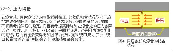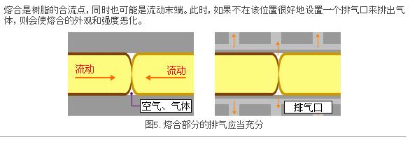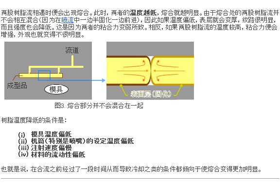 熔合紋在樹脂合流之處有開孔的部分會(huì)出現(xiàn)。